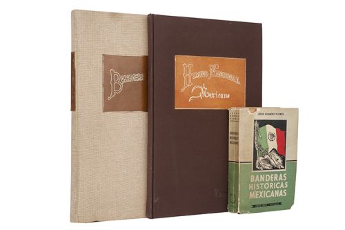 Subasta 710, Lote # 278 HM - Romero Flores, Jesús / Porrúa, Miguel Ángel. Banderas Históricas Mexicanas / Himno Nacional Mexicano / Bandera de México. a) Romero Flores, Jesús. Banderas Históricas Mexicanas. México: Libro Mex, 1958. 8o. marquilla, 262 p. Semi - intonso. Faltante superior en pasta anterior, lomo y pastas gastados. Encuadernado en rústica. b) Porrúa, Miguel Ángel. Himno Nacional Mexicano. México: Editorial Porrúa, 1983. fo. marquilla, 142 p. Encuadernado en pasta dura. c) Porrúa, Miguel Ángel. Bandera de México. México: Editorial Porrúa, 1985. fo. marquilla, XXI + 198 p. Encuadernado en pasta dura, en yute. Total de piezas: 3. Estimado $3,000-4,000