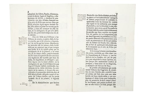 "Luego que llegue á la Cabezera de la Jurisdiccion de su Partido, lo primero que ha de hacer es presentarse al Corregidor, ó Alcalde mayor con el Titulo, y passará con la assistencia de este, y la del Escribano, si lo huviere, ó Testigos en su defecto, á entregarse de los Tabacos que haya existentes en la Administracion que se le destinasse, como los que huviesse en los Lugares de su agregacion; y en caso que se encuentre alguna porcion, ó porciones, que no se puedan dar á la venta por estar adulterados, tambien se entregará de ellos á ley de deposito, dando recibo de la cantidad que fuesse con esta distincion, y con la misma se hará el cargo correspondiente...".