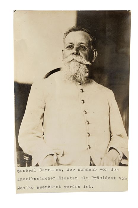Con cédula adherida al pie: "General Carranza, der nunmehr von den amerikanischen Staaten als Präsident von Mexiko anerkannt worden ist".