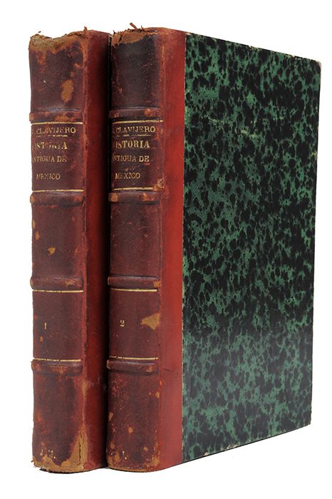 HM - Clavijero, Francisco Javier. Historia Antigua de México. Sacada de los mejores historiadores españoles, y de los manuscritos y de las pinturas antiguas de los indios dividida en diez libros: adornada con mapas y estampas e ilustrada con disertaciones sobre la tierra, los animales y los habitantes de México. México: Departamento Editorial de la Dirección General de las Bellas Artes, 1917. 8o. marquilla, XLIII + 488; 529 p. Traducida del italiano por J. Joaquín de Mora y precedida de noticias bio - bibliográficas del autor, por Luis González Obregón. Lomos y puntas deteriorados. Encuadernados en pasta dura, lomo en piel. Piezas: 2. Palau: 55483. Estimado $4,000-5,000