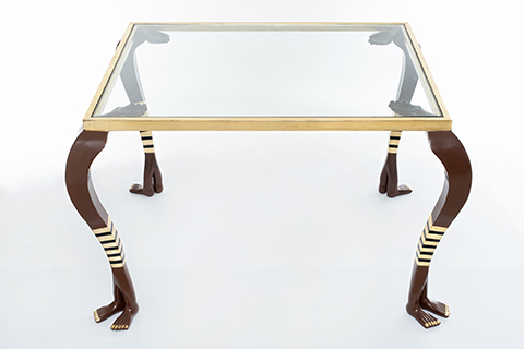Mesa de madera con partes estofadas en oro fino con cristal