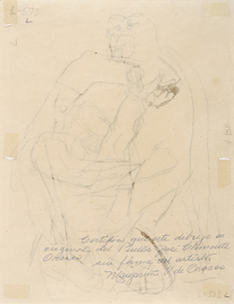 Subasta 825, Lote # 154 JOSÉ CLEMENTE OROZCO (Zapotlán actual Ciudad Guzmán, Jalisco, 1883 - Ciudad de México, 1949) a) ¡Ah! ¿Eres tú?, ca. 1945 b) Pareja siamesa centauro, ca. 1947 Sin firma Tinta sobre papel Piezas: 2 Ambas certificadas al reverso de forma autógrafa por Margarita Valladares de Orozco. Las dos con dictámenes de autenticidad de la Fundación José Clemente Orozco A.C., firmados por Clemente Orozco V. Procedencia: adquiridas a la colección de la familia del artista; provienen originalmente del taller de José Clemente Orozco. Colección privada. Sobre la colección de dibujos del Maestro José Clemente Orozco incluida en los lotes 154, 156, 158, 159 y 160: "José Clemente Orozco mencionaba: '¿Acaso no es posible crear una obra maestra con un lápiz cualquiera sobre cualquier papel?' Y Orozco lo demostró plenamente en la mayoría de estos dibujos. Quien quiera que sea el dueño particular va a poseer algo invaluable y singular: la creación directa, concreta de una idea estática. Ningún particular posee semejante acervo. Solamente las instituciones o los edificios donde dejó su obra mural. Por otra parte, estos dibujos que provienen del taller de Orozco y pasaron a ser propiedad de la familia, le sirvieron al pintor para realizar obras independientes de los murales y son la clave para entender el proceso creativo de estas y otras pinturas. Si tenemos en cuenta el número de coleccionistas, es claro que sería imposible que alguno de ellos poseyera siquiera alguno de estos dibujos. Se precisa de una gran sensibilidad y criterio estético para valorar lo excepcional de tener esta oportunidad". Clemente Orozco Valladares. 27.4 x 21 cm cada una USD $4,110-$6,160 Estimado $ 80,000-120,000