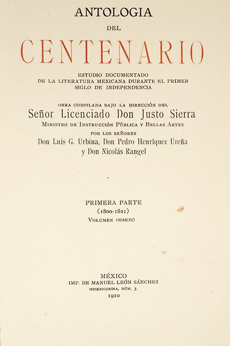 Obra compilada por los Señores: Luis G. Urbina, Pedro Enriquez Ureña y Nicolás Rangel.