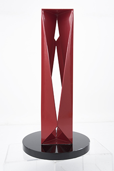Subasta 825, Lote # 117 JESÚS MAYAGOITIA (Ciudad de México, 1948 - ) Encuentro de aniversario, escultura para el InstitutoTecnológico de Monterrey Firmada y fechada 12 Escultura en acero pintado 16 / 17 Con certificado de autenticidad del artista. Presenta detalles de conservación en las esquinas. Publicada en: Escultura de pequeño formato. México. Arte Hoy galería, 2014, Pág. 25. La versión de gran formato (1,200 cm de altura) de esta escultura fue realizada en 1997 y se encuentra en el Instituto Tecnológico de Monterrey, campus Estado de México; su título es "Encuentro de aniversario" y fue develada para la Conmemoración del XX aniversario del ITESM. Esa escultura está publicada en: KASSNER, Lily. Jesús Mayagoitia escultor. México. UNAM, 2016, Pág. 79. Estudió la Licenciatura y la Maestría en Artes Visuales en la ENAP y ha realizado labores como docente en la misma institución. Es miembro del Sistema Nacional de Creadores de Arte del FONCA desde 1997. Ha presentado su obra en más de 100 exposiciones colectivas y 30 individuales. Ha recibido importantes reconocimientos en México y en el extranjero, fue el primer mexicano en ganar The Henry Moore Grand Prize por su escultura "Espacio vertical" en 1987. Su obra forma parte de relevantes colecciones entre las que destacan las del Museo de Arte Abstracto Manuel Felguérez, Museo de Arte Moderno, Museo de la Secretaría de Hacienda y Crédito Público, Museo de Arte Contemporáneo de Aguascalientes, Museo Fernando García Ponce-MACAY y el museo al aire libre Utsukushi-ga-Hara en Japón. La obra de Jesús Mayagoitia se encuentra indudablemente marcada por la geometría; un purista de la línea, sus trazos se escapan del plano para materializarse en el vacío, dando color a la ausencia, proporcionando forma y figura al espacio. Esta obra pertenece a la etapa de su obra conocida como "Escultura modular" que comprende su producción de 1977 a 2000. En estas piezas, el secreto de su técnica está en la soldadura, que permite la convivencia de diversos módulos, a veces de distintos tamaños, en un equilibrio geométrico de proporciones exactas. Fuente consultada: ESPINOSA FERNÁNDEZ, Jorge. Jesús Mayagoitia. México. Arte Hoy galería, 2014, pp. 6, 22 y 68. 45 x 15 x 15 cm USD $3,080-$4,650 Estimado $ 60,000-90,000