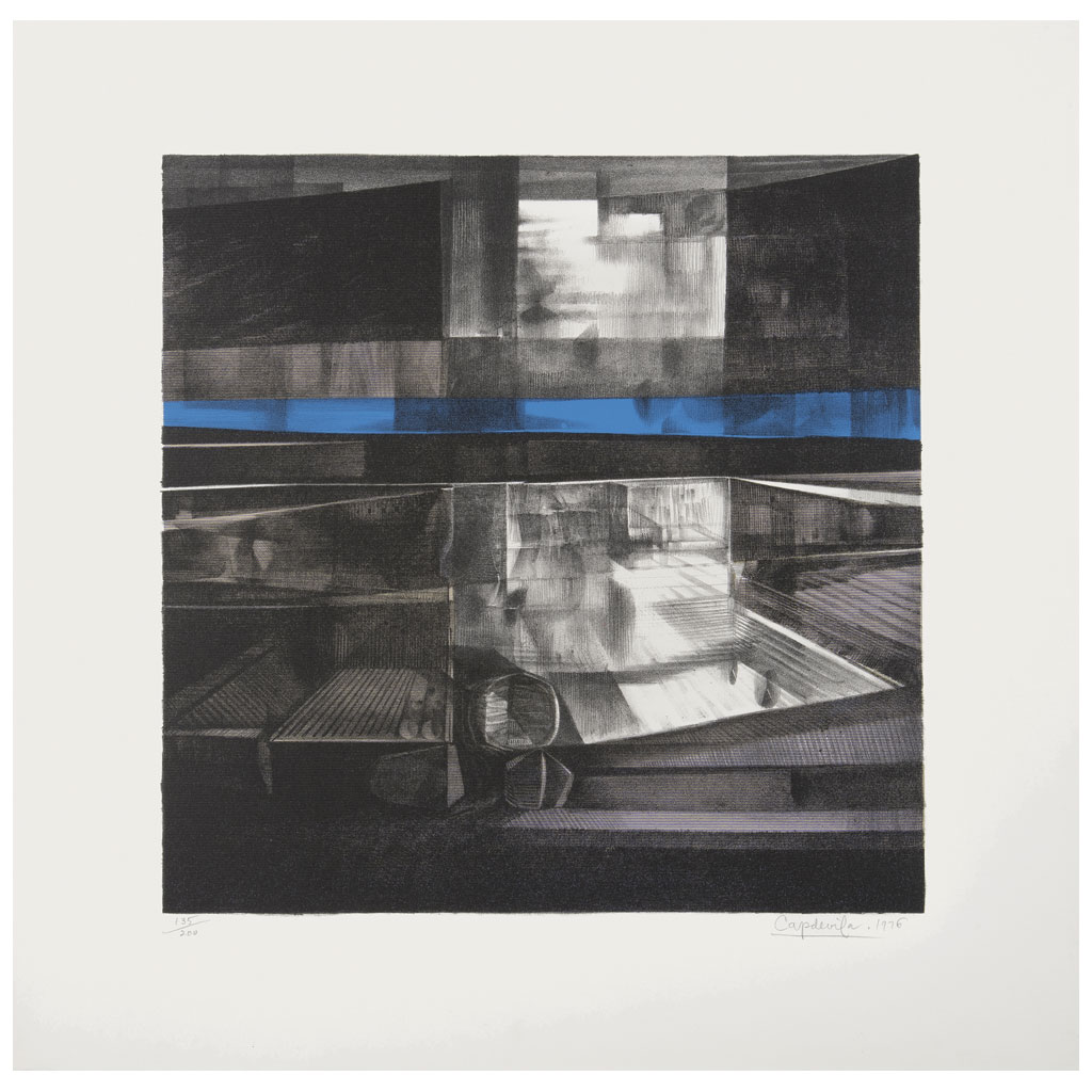 Subasta 857, Lote # 268 FRANCISCO MORENO CAPDEVILA (Barcelona, España, 1926 - Ciudad de México, 1995) Litografías Firmadas y fechadas 1976 Litografías 135 / 100 Piezas: 3, en carpeta Impresas en el Taller de Litografía de la Escuela Nacional de Artes Plásticas y editadas por EMEI Gráfica Editorial para Grupo ICA en 1976. Pertenecen a la carpeta "Litografías", que originalmente incluía el texto "El espacio inventado y el espacio trabajado de Moreno Capdevila" de Raquel Tibol. "En estas litografías, Francisco Moreno Capdevila desarrolla, expresa, penetra, medita, sitúa y actualiza un asunto tan antiguo como el hombre mismo: el trabajo. "Muchos son los trabajos en los que el hombre empeña fuerza, libertad, destino, esperanza, ingenio, disciplina. Entre todos ellos Capdevila eligió uno: la construcción, estrechamente ligada al arte plástico porque ambos operan con un elemento tan concreto como inasible: el espacio". Raquel Tibol. 43 x 43 cm cada una 64.5 x 64.5 cm medidas totales de la carpeta Estimado $ 15,000-25,000