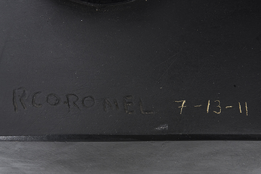 Subasta 825, Lote # 91 RAFAEL CORONEL (Zacatecas, Zacatecas, 1931 - ) Reposo Firmada y fechada 11 Escultura en bronce 7 - 13 Con certificado de autenticidad del artista, noviembre de 2011. Agradecemos a Juan Coronel Rivera por la verificación de autenticidad de esta obra, marzo de 2017. "Somos mestizos, tenemos sangre española e indígena. Yo, soy un producto auténtico de ese mestizaje, mi pintura es así y no niego las raíces hispánicas, italianas ni las mexicanas, y en ese contexto, evidentemente mi pintura es totalmente mestiza […] Yo no pertenezco a la generación de los rompedores [refiriéndose a la Ruptura], siempre dicen que soy parte de esa generación pero soy de la Escuela Mexicana de lo que estoy muy orgulloso. He vivido en Japón, en Nueva York, en la India y numerosas ciudades y países del mundo y nunca olvido México, porque tiene tanta pureza y fuerza como los demás países". Rafael Coronel. Fuente consultada: "Se han fijado en mí más de lo que me merezco: Rafael Coronel". México. Diario El Economista, 1 de noviembre de 2011. 126 x 84 x 46 cm USD $33,350-$46,150 Estimado $ 650,000-900,000