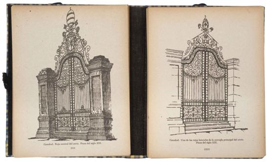 Subasta 710, Lote # 362 T - Romero, Matías / Cervantes, Enrique A. Oaxaca / Tasco / Mérida / Puebla / Herreros y Forjadores Poblanos / Catedral Metropolitana. Sillería del Coro. a) Romero, Matías. El Estado de Oaxaca. Barcelona: Tipo-litografía de Espasa y Compa., 1886. 4o. marquilla, 212 p. Con una "Carta Corográfica del Estado de Oaxaca y de su capital y alrededor firmada por el Doctor Manuel Ortega Reyes". De 43.5 x 51 cm. Con ligera rasgadura. Pastas gastadas. Encuadernado en pasta dura, lomo en piel. b) Cervantes, Enrique A. - TASCO en el año de mil novecientos veintiocho. México: Manuel Casa, 1933. Con 55 láminas. Edición de doscientos ejemplares numerados, ejemplar no. 154. En carpeta. - Bosquejo del Desarrollo de la Ciudad de Mérida. México: 1945. 4o. marquilla, 59 p. Con 12 ilustraciones y 1 mapa plegado. Edición de 1,000 ejemplares numerados, ejemplares Nos. 310 y 321. Encuadernados en rústica. Obra repetida. Piezas: 2. - Bosquejo del Desarrollo de la Ciudad de Puebla. México: Imp. M. Casas, 1938. 4o. marquilla, 175 p. Encuadernado en rústica. - Herreros y Forjadores Poblanos. México: 1933. 4o. marquilla, LXX folios. Dibujos y fotografías del Autor. Edición de 1,000 ejemplares. Ejemplar No. 955. En carpeta. Palau: 51881. - Catedral Metropolitana. Sillería del Coro. México: En los Talleres de Impresión de Estampillas y Valores, bajo la dirección del autor, 1936. 4o. marquilla, XL hojas. 29 hojas con ilustraciones. Fotografías y viñetas del Autor. Edición de 1,100 ejemplares numerados. Ejemplar No. 363. Dedicado, firmado y fechado nov 1938 por el autor. Carpeta, en estuche. Piezas: 7. Estimado $5,000-7,000