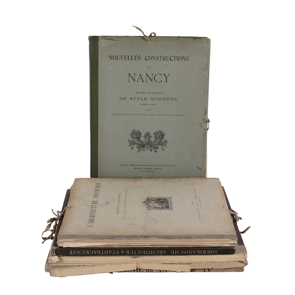 Subasta 710, Lote # 106 Lote de libros. Chateaux de France. Intérieurs et Exterieurs/ L'Architecture au XXme Siècle / Monuments Historiques depuis le XI° siècle jusqu'a nos jours. Consta de: a) Lemaire, W. / Saint - Sauveur, Hector. Chateaux de France. Intérieurs et Exterieurs. Paris: Ch. Massin. Folio marquilla. - Lemaire, W. Anciens et Modernes. 2 h. + 7 p. + 40 láminas. En carpeta. - Saint - Sauveur, Hector. Normandie. 2 h. + 18 p. + 45 láminas. Noticies historiques de Marcel Fouquier. En carpeta. Vaux - le - Vicomte. 2 h. + 6 p. + 38 láminas. En carpeta. Région de la Loire. 2 h. + 6 p. + 40 láminas. En carpeta. b) Albert Morancé (editor). Librairie Centrale d'Art et d'Architecture. L´Architecture au XXe Siècle. Paris: Albert Morancé. Folio marquilla. Choix des meilleures contructions nouvelles, hotels, maisons de rapport, villas, etc. - Troisième Série. Volume I y II: VI p. + 49 láminas; VI p. + de la lámina 50 a la 100. En carpetas. - 1er Volume: 4 h. + 100 láminas. En carpeta. - Quatrième Série: 2 h. + 2 p. + 50 láminas. En carpeta. c) Armand Guérinet (editor). Monuments Historiques depuis le XI° siècle jusqu'a nos jours. Paris: Armand Guérinet. Folio marquilla, 1 h. + 76 láminas; 1 h. + de la lámina 77 a la 146. Sin lomos. En carpetas. Presentan detalles de conservación, faltantes, lomos desprendidos, bordes maltratados y desgaste. Piezas: 10 Estimado $2,500-3,500