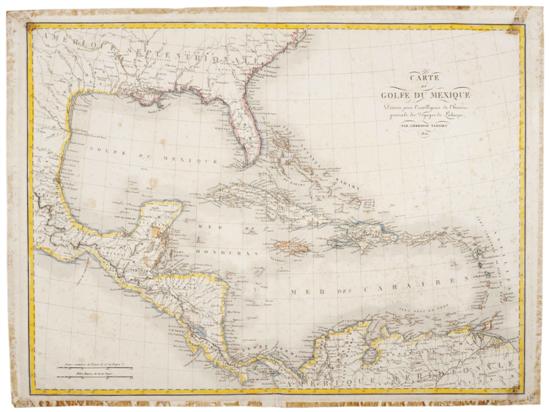 G - Tardieu, Ambroise. Carte du Golfe du Mexique. Dressée pour l'intelligence de l'histoire generale des Voyages de Labarpe. Mapa grabado, 40.5 x 54 cm. Manchas de óxido, doblez reforzado con cinta adhesiva. Estimado $6,000-8,000