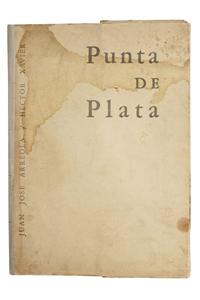 Arreola, Juan José - Héctor Xavier. Punta de Plata. Bestiario. México: Universidad Nacional Autónoma de México, 1993. fo. marquilla, 36 p + 24 láminas. Edición facsimilar de Punta de Plata. Bestiario de Juan José Arreola con 24 grabados de Héctor Xavier. Edición de 1,000 ejemplares. Manchas de humedad. En carpeta. Estimado $4,000-5,000