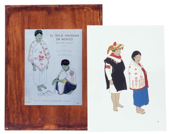 Mapelli Mozzi, Carlota. El Traje Indígena en México. México: Instituto Nacional de Antropología e Historia, 1968. Texto: 4o. marquilla apaisado, 112 p. Encuadernado en rústica. fo. marquilla, 36 patrones + 5 láminas en blanco y negro + 30 láminas a color. Tomo II. Dibujos de Teresa Castelló Yturbide. Texto Bilingüe. En caja de madera. Éste segundo volúmen del Traje Indígena, está dedicado fundamentalmente a los grupos nahuas y mayenses, completa un panorama general de la indumentaria tradicional, de origen indocolonial, usada actualmente por los indígenas de nuestro país. Estimado $6,000-8,000