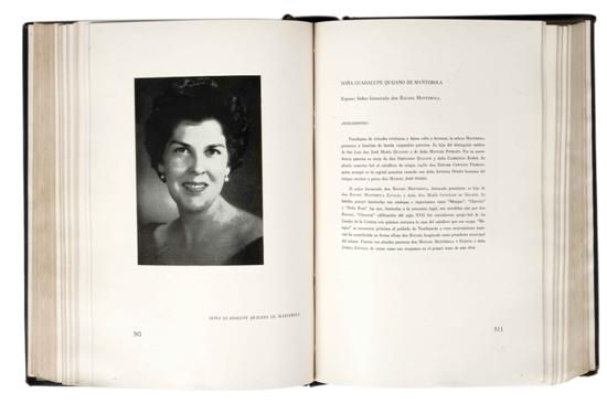 GN - Duque de Otranto. Familias de México. México: Carlos González López Negrete, 1958. 4o. marquilla, X + 7 h. + 981 p. Edición de 400 ejemplares, 50 de ellos en papel especial, 35 en edición de lujo. Ejemplar Núm. 23. Lomo por desprenderse, pastas gastadas, manchas de óxido. Encuadernado en pasta dura. Estimado $6,000-8,000