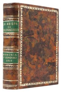 Subasta 710, Lote # 206 EB - LA ABISPA DE CHILPANCINGO: OBRA MUY RARA E IMPORTANTE, DE LAS MÁS BUSCADAS EN PRIMERA EDICIÓN, DEL ILUSTRE MEXICANO PATRIOTA, DON CARLOS MARÍA DE BUSTAMANTE. Bustamante, Carlos María. (1774 - 1848). LA ABISPA DE CHILPANCINGO. Escrita para perpetuar la memoria del Primer Congreso instalado allí, el día 12 de septiembre de 1813 por el señor D. José María Morelos. México, Imprenta de D. Mariano Ontiveros, calle del Espíritu Santo, años de 1821-1822. Primera edición. 14 x 21 cm., 498 páginas más 8 sin paginación del suplemento de la carta 24. Total: 506 páginas. Completo: comprende 30 cartas suscritas entre 1821 hasta el 29 de agosto de 1822, y suplementos a las cartas número 8 y 24. Encuadernación moderna, piel completa con títulos en tejuelos y adornos en dorado. Buen ejemplar, fuerte, en general limpio, excepto que tiene rastros de polilla, todos expertamente reparados, con afectación a letras del texto, sin perder legibilidad. Una de la obras mas raras del célebre patriota mexicano / oaxaqueño, Don Carlos María de Bustamante, quien editó este periódico en la Ciudad de México, para enaltecer la vida de Don José María Morelos y Pavón y en remembranza adonde se celebró el Primer Congreso de Anahuac; el 13 de Septiembre de 1813, en Chilpancingo: "… lugar de avispas…". La vida de este periódico abarcó de 1821 a 1823: las ideas libertarias, las guerras intestinas para detentar el poder, además de la conformación y sustento de la nueva patria, encontraron eco en sus páginas Palau: 37709. En la amplia relación de toda la obra que identifica de este insurgente / político / historiador, clasifica este título como la obra príncipe. Coincide Palau con las 498 páginas y 30 cartas. No menciona el suplemento de la carta No. 24, con 8 páginas sin numerar, pero reconoce el de la carta No. 8. El maestro O'Gorman en su notable obra Guía Bibliográfica de Carlos María de Bustamante, Centro de Estudios de Historia de México. México, 1967, dedica 5 páginas a la descripción de La Abispa, con el No. 168, con 489 páginas y un suplemento, el de la carta No. 8, pero después de la descripción de la carta No. 24, reconoce el suplemento de esta misma carta, con 8 páginas sin numerar. Obra rara: No está en el catálogo Porrúa de 1949, en donde se ofrecen las numerosas obras de Bustamante que coleccionó D. Joaquín García Icazbalceta. El catálogo No. 9 de D. Pedro Robredo, de 1933, ofrece 15 obras del Sr. Bustamante, pero no La Abispa. WorldCat/OCLC., localiza a nivel mundial, un total de 12 ejemplares en diversas instituciones de 5 países: No. 647875574, ejemplar en la Universidad de Berlín. Otro ejemplar en Univ. de Chicago: No. 49447837. En las universidades de Tulane, de California / Los Ángeles, de Cornell, de Texas / Benson Collection, con el No. 14067242. Con el No. 227700827: ejemplares en Univ. de Yale, de California / Berkeley, la British Library, la Biblioteca Nacional de España, Biblioteca Nacional de México y El Colegio de México. ABPC: en 35 años de subastas internacionales, lista varios títulos del mismo autor, pero este no. Abebooks a mayo, 2014: no. Adquirido hace 35 años, en 1980, a notable abogado / historiador / bibliófilo mexicano, QEPD. Estimado $120,000-140,000