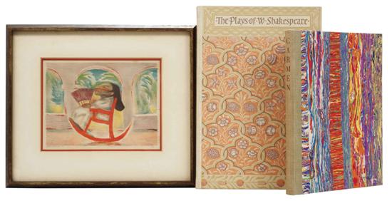Subasta 710, Lote # 117 A - Shakespeare, William / Mérimée, Prosper / Charlot, Jean. Henry The Sixth Part III / Carmen / The Rocking Chair. a) Shakespeare, William. Henry The Sixth Part III. New York: The Limited Editions Club, 1940. fo., 105 p. Ilustrado por Jean Charlot. Edición limitada de 950 ejemplares, siendo este el No. 702. Sin refinar. Encuadernado en pasta dura. b) Mérimée, Prosper. Carmen. New York: The Limited Editions Club, 1941. 4o. marquilla, 143 p. Ilustraciones de Jean Charlot. Ejemplar No. 654, firmado por Jean Charlot. Pastas gastadas. Encuadernado en pasta dura. En estuche. c) Charlot, Jean. The Rocking Chair. Litografía a color, 16.5 x 22 cm. Firmada: "Jean Charlot - 33". Con una etiqueta al reverso de "The Arwin Galleries Inc." en Detroit Michigan, fechada 1966. Total de piezas: 3. Estimado $6,000-8,000