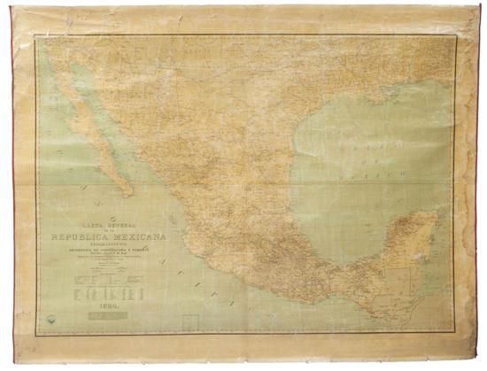 G - Sánchez, Pedro C. Carta General de la República Mexicana. Mapa, 112 x 158 cm. México: Secretaria de Agricultura y Fomento, 1924. Esta carta fue empezada durante el Gobierno Constitucional de señor Don Venustiano Carranza, se continuó durante el Gobierno Interino del señor Don Adolfo de la Huerta, terminándose durante el Gobierno Constitucional del C. General Alvaro Obregón. Estimado $10,000-12,000