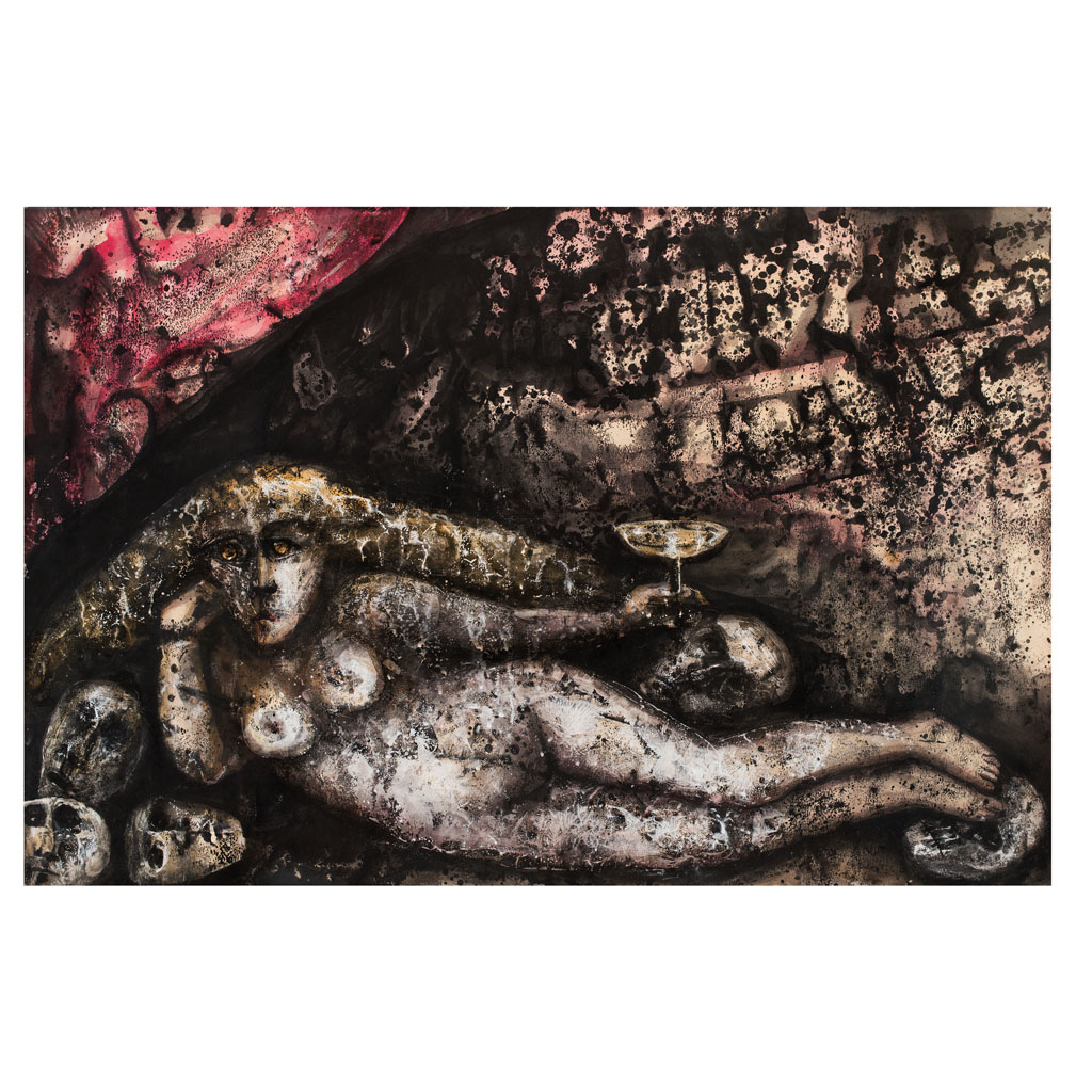 Subasta 745, Lote # 120 FANNY RABEL Mujer fatal, 1975 Sin firma. Tinta y gouache sobre papel. Con dos etiquetas del Salón de la Plástica Mexicana, una de El Taller Galería de Arte y una del Museo del Palacio de Bellas Artes. Presenta una pequeña rasgadura en el extremo izquierdo. "Profundamente comprometida con su tiempo y sociedad, a través de pinturas de caballete, obra gráfica, murales, carteles e ilustraciones, Rabel retrató niños, mujeres y el amplio espectro de personajes característicos de la vida cotidiana del México que le tocó vivir. En su obra, siempre centrada en la figura humana, Rabel fue capaz de expresar los ideales más dignos, pero también el horror más atroz, encarnado en el doloroso fenómeno de la migración, en el caos urbano, en la destrucción de la naturaleza y en los inenarrables horrores de la guerra y de la pobreza. Rabel denunció estas realidades con gran fuerza expresiva y originalidad, enfatizando a veces la ternura y adoptando en otras una postura crítica, matizada con un sentido irónico muy personal y elocuente". Dina Comisarenco Mirkin. Véase: COMISARENCO MIRKIN Dina et ál. "Para participar en lo justo: recuperando la obra de Fanny Rabel". México, Pág. 24. 57.5 x 88 cm USD$5,600-$6,700 Estimado $75,000-90,000