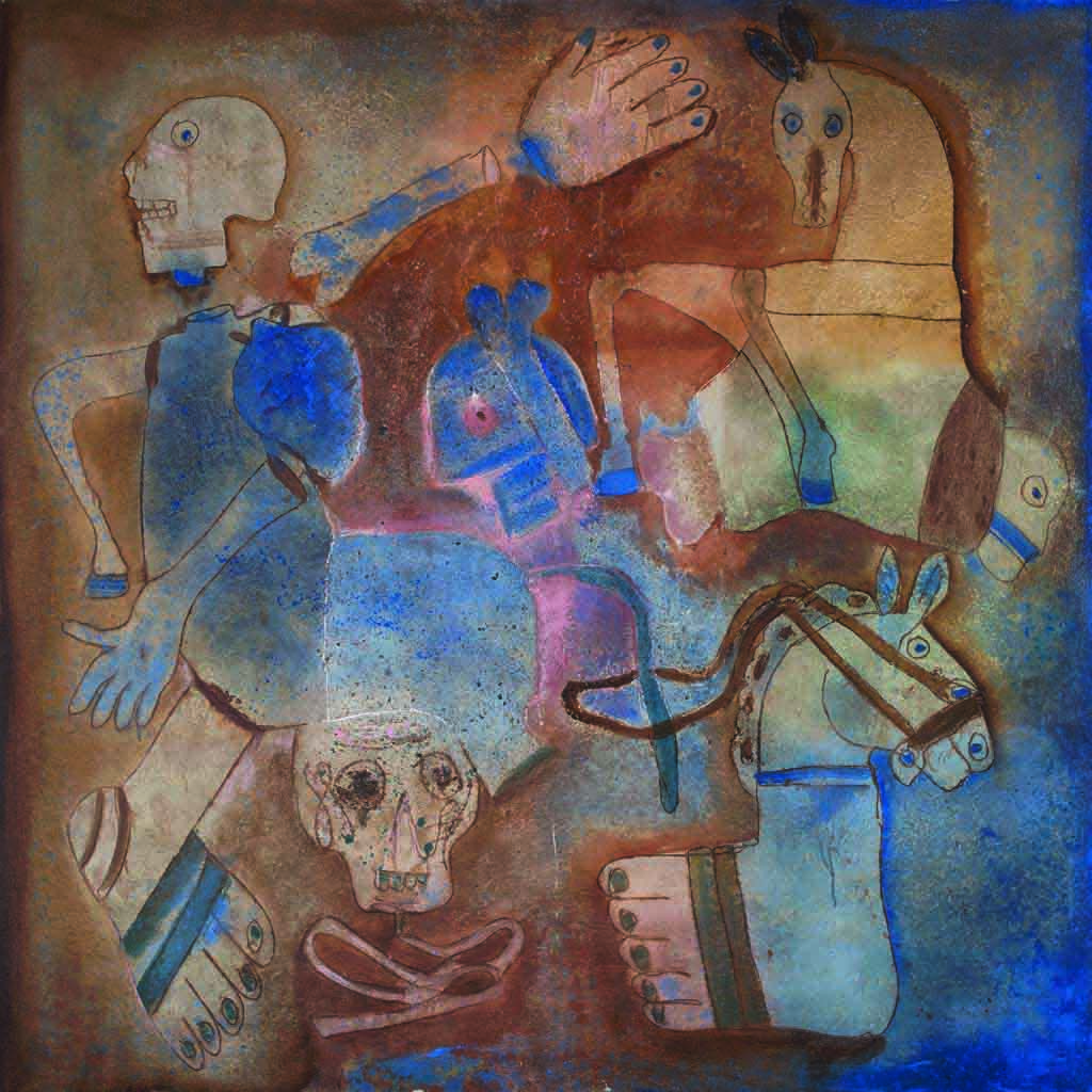 SERGIO HERNÁNDEZ Caballos, 1997 Firmado al reverso. Óleo y arena sobre tela. Procedencia: adquirido directamente al artista. Presenta faltantes de capa pictórica en la parte inferior.
