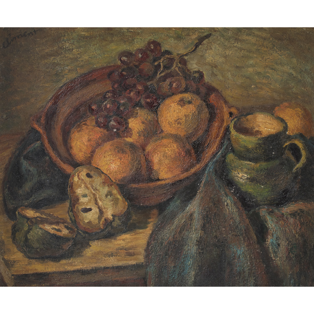 Subasta 767, Lote # 181 ENRIQUE CLIMENT (Valencia, España, 1897 - México, 1980) Naturaleza muerta con uvas Firmado Óleo sobre tela Agradecemos a Pilar Climent, hija del artista por la verificación de autenticidad de esta obra, octubre de 2015. Con certificado de autenticidad de Galerías Mer-Kup firmado por el artista, abril de 1967. En 1939 Climent llegó a México como refugiado de la Guerra Civil Española. Como sucedió con muchos otros de los artistas que desembarcaron en las misma circunstancias, México nutrió su trabajo y su obra [...] Apasionado de su oficio, en su pintura hacían frontera las naturalezas muertas con los lugares imaginarios y los derroteros de la pintura abstracta. Muy pronto se convirtió en una de las marcas decisivas del arte mexicano del siglo XX. Fuente consultada: CLIMENT, Enrique. Enrique Climent en el Museo de la Ciudad de México. México. Artes de México, 2015, Pág. 3. 50 x 61 cm USD $7,100-$10,600 Estimado $120,000-180,000