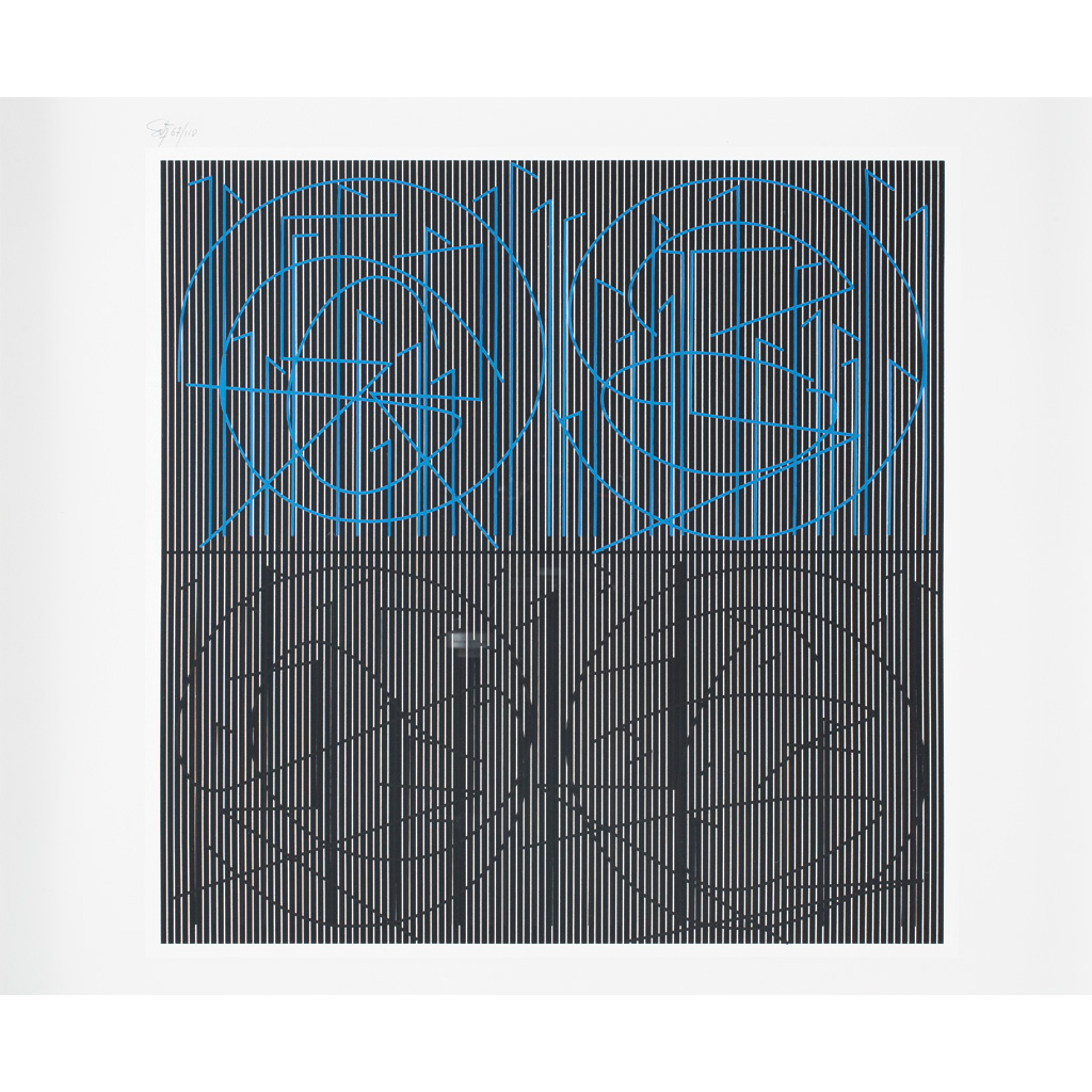 Subasta 767, Lote # 156 JESÚS RAFAEL SOTO (Ciudad Bolívar, Venezuela, 1923 - París, Francia, 2005) Sin título Firmada Serigrafía 67 / 110 Con certificado de autenticidad de Galería Alfredo Ginocchio, septiembre de 2015. En la serie de Escrituras de Jesús Rafael Soto, la superficie parece revelar un guión misterioso. Un mensaje se forma, pero luego retrocede visualmente en un bosque de líneas verticales. Al moverse a distintas distancias, las líneas curvas parecen bailar hacia el primer plano. Este dinamismo es un registro de la mano del artista y produce la sensación de animación entre la superficie plástica y el espectador. El espacio era uno de los temas universales que Soto exploró en su obra, al respecto decía que concebía al arte "como un conjunto de preguntas que debe ser resuelto por el artista, porque son problemas que se plantea a lo largo de su vida". Soto va más allá de la reorientación de las relaciones entre los elementos físicos de su trabajo. Su arte también requiere un tipo diferente de relación con el espectador, una participación activa por medio del movimiento, el cual corresponde a las vibraciones ópticas. La música era importante para Soto (tocaba la guitarra) y fue la precisión matemática de Bach y los compositores modernos donde Soto reconoció la abstracción pura que buscaba para su arte. Fuente consultada: GINSBERG, Mimi. "Infinite possibilities: Jesús Rafael Soto's Escritura". E.E. U.U. Sitio del proyecto Constellations: Past, Present & Future Directions at the Art Museum of the Americas. 74 x 64.5 cm USD $5,900-$8,800 Estimado $100,000-150,000