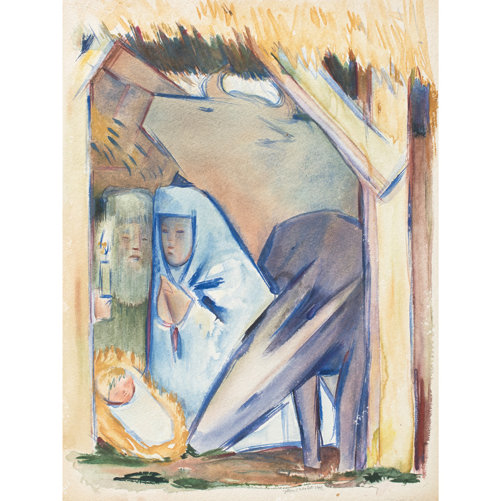 JEAN CHARLOT (París, Francia, 1898 - Hawái, EE.UU., 1979) Nacimiento Firmada y fechada 1943 Acuarela sobre papel Se trata del original a partir del que desarrolló la litografía de la misma temática. 37 x 28 cm
