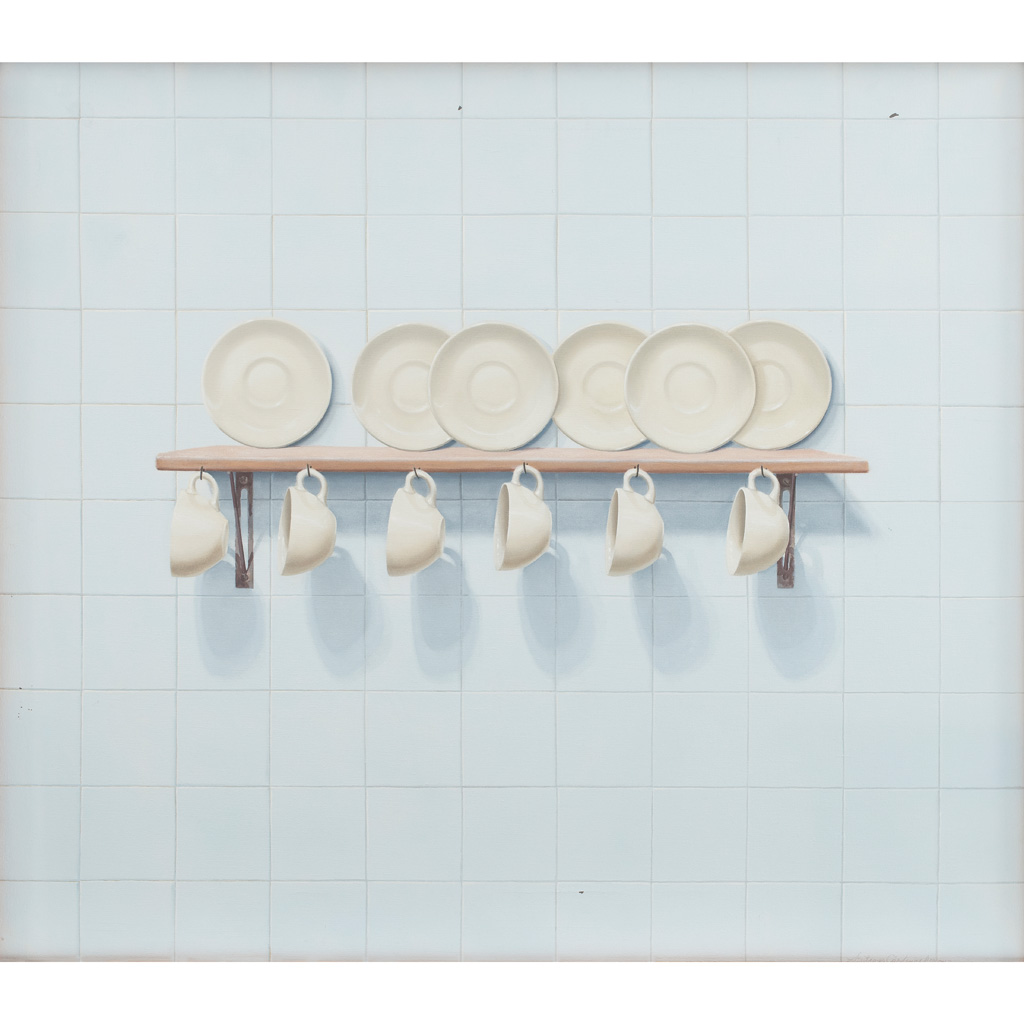 Subasta 767, Lote # 183 SANTIAGO CÁRDENAS (Bogotá, Colombia, 1937 -) Naturaleza muerta con tazas Firmado Óleo sobre tela Procedencia: adquirido a la Colección Window South, Menlo Park, California por el actual propietario. Con etiquetas de Garcés Galería con el título "Taza y Platos" y de Christie's. Presenta desprendimientos de capa pictórica. Realizó estudios de arte en Rhode Island School of Design, BFA en pintura en 1960. Fue becado en Cummington Art School, Massachussetts durante el verano de 1959. Después de prestar servicio militar obligatorio en el ejército de los Estados Unidos, ingresó a Yale University donde obtuvo el MFA en pintura en 1964. Regresó a Colombia en 1965 y desde entonces cuenta con una activa carrera docente ejercida en la Universidad Nacional de Colombia. Allí es profesor titular y profesor emérito. "Santiago Cárdenas tiene un impecable manejo de los recursos plásticos y el total dominio de estos. Una demostración de ello son las sombras sutiles que ocupan parte de los espacios y con los cuales inserta atmósferas poéticas texturizadas, luces y sombras que rodean o abrazan el espacio y los objetos, sin ánimo de engañar el ojo o representar fidedignamente la realidad. Más bien le propone al visitante una nueva realidad; lo motiva a pensar y de una u otra forma sumergirlo en un mundo aparentemente real, pero lejos de serlo, pues todo espacio ha sido inventado y creado por el artista. Su objetivo parece ser que el espectador realmente mire y vea el objeto, inmerso en un espacio poético que nos devuelve a una realidad transformada". María Cristina Pïgnalosa. Fuente consultada: PÏGNALOSA, María Cristina. "Santiago Cárdenas y el mundo de los objetos". Colombia. KienyKe, 23 de septiembre de 2013, en diario digital: www.kienyke.com/tendencias/santiago-cardenas-y-el-mundo-de-los-objetos/ 112 x 127 cm USD $8,800-$14,700 Estimado $150,000-250,000