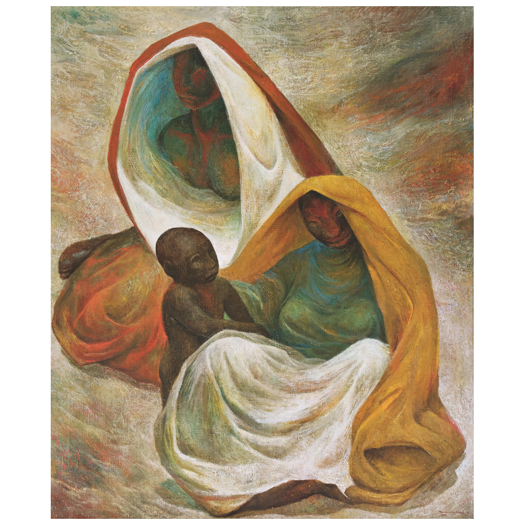 Subasta 825, Lote # 179 GUILLERMO MEZA (Ciudad de México, 1917 - Ciudad de México, 1997) Sin título Firmado y fechado 1953 Óleo sobre tela Aprendiz de músico por parte de su padre, cargador de canastas en La Merced, amante de su tierra y dibujante nato, Guillermo Meza trabajó como tema principal la denuncia social. Tras figuras humanas distorsionadas conjugadas en fondos fantásticos llenos de ritmo, armonía y composición cromática, Meza hacía una muestra simbólica del reclamo a la ruptura sufrida en el pueblo. Era un arraigado nacionalista cuya obra ha pasado a la historia del arte mexicano por su mensaje humano y reflexivo de forma sublime. "La obra pictórica del artista destaca por sus habilidades estéticas que revelan trazos firmes en el dibujo, solidez en el manejo del color y una visión formal diferente, la cual más que subconsciente o inconsciente es surrealista. Trata la vida indígena revestida de elementos simbólicos con recuerdos de la infancia en un ambiente romántico, evocativo y muchas veces trágico". Rebeca Monroy Nars. Fuentes consultadas: MARTÍNEZ LÁMBARRY, Margarita et ál. La colección de pintura del Banco Nacional de México. Tomo II. México. Grupo Financiero Banamex, 2002, Pág. 418 y "Obra de Guillermo Meza pasó a la historia por su contenido universal". México. Notimex, 10 de octubre de 2007. 110 x 90 cm USD $9,250-$12,850 Estimado $ 180,000-250,000