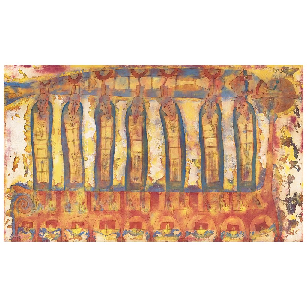 Subasta 825, Lote # 108 ROLANDO ROJAS (Tehuantepec, Oaxaca, 1970 - ) El viaje de Marías, 1999 Firmado Óleo y arena sobre tela Con certificado de autenticidad de Galería Alberto Misrachi, marzo de 2000. Agradecemos al Maestro Rolando Rojas por la verificación de autenticidad de esta obra, abril de 2017. Con etiqueta de Galería Alberto Misrachi. A los 16 años ingresó en el Taller de Artes Plásticas de la Casa de la Cultura de Tehuantepec y más tarde cursó la carrera de Arquitectura en la Universidad Autónoma Benito Juárez, mientras que por las tardes acudía a la Escuela de Bellas Artes de Oaxaca. Uno de sus grandes maestros, fue Shinzaburo Takeda, quien le dejó una notable enseñanza de la técnica y la disciplina de la pintura. A menudo, Rolando Rojas trabaja con cuadros de grandes formatos; se despliega frente a su obra como coreógrafo, que apoyado en su profesión de arquitecto, guía y crea sus puestas en escena, a las cuales logra transmitir la voz del pintor. Así, en el lienzo se consuma con extrema sencillez y sin desgastadas e inusuales pretensiones, una ceremonia, un ritual de vida. Es un artista que busca generar una poesía más que sólo un efecto visual, guiado por la composición y el ritmo a través de las figuras y el color. Desde hace más de 30 años, su obra ha participado en diversas exposiciones colectivas e individuales en México y en ciudades en el extranjero, como California, Miami, Atlanta, Montreal, Puerto Rico, Madrid, París, Milán y Tokio. Fuente consultada: LARA ELIZONDO, Lupina. Resumen pintores y pintura mexicana. México. Promoción de Arte Mexicano, año 14, No. 101, septiembre de 2009, pp. 29-32. 150 x 250 cm USD $10,260-$14,360 Estimado $ 200,000-280,000