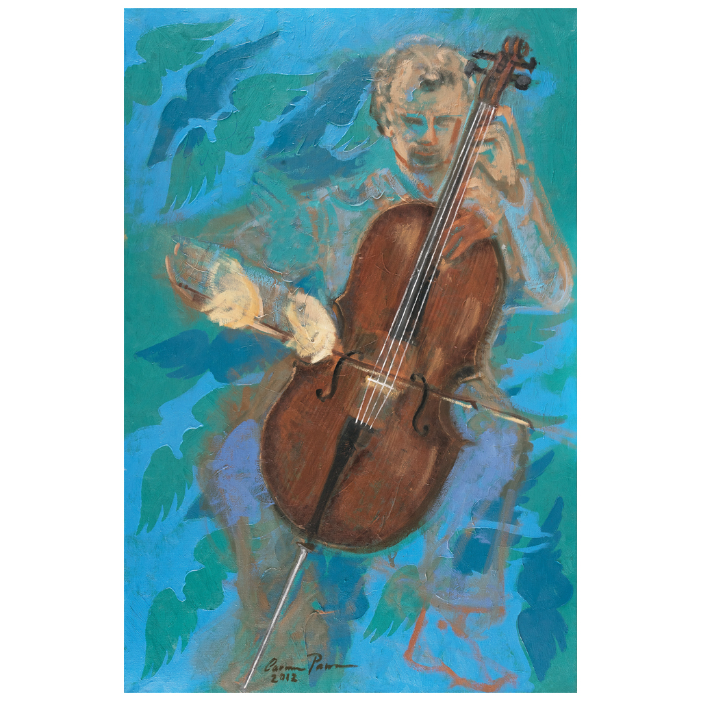 Subasta 825, Lote # 187 CARMEN PARRA (Ciudad de México, 1944 - ) Álvaro Bitrán, chelista del Cuarteto Latinoamericano Firmado y fechado 2012 Óleo sobre tela Con constancia de autenticidad de El Aire Centro de Arte firmada por la artista. De vida ambulante e inquieta juventud, su espíritu creativo se fue formando y proyectando a partir de múltiples y sucesivas experiencias vitales y artísticas: primero, la íntima influencia de su padre, el arquitecto Manuel Parra, y su entorno cultural; y luego, su primer viaje a Europa (España, París, Italia), la visita a sus museos, su formación en la Academia de Bellas Artes de Roma con Juan Soriano, y posteriormente en La Esmeralda y en el Royal College of Art en Inglaterra. Su vida y producción artística se han visto enriquecidas, gracias a la amistad y cercanía con diferentes figuras del panorama artístico. Alvaro Bitrán es un reconocido violoncellista mexicano, fue condecorado por el gobierno mexicano con la Medalla de Bellas Artes en el 2000 y por el gobierno chileno con la Órden al Mérito Pablo Neruda en el 2014, máximos galardones que otorgan ambos gobiernos en materia cultural. Asimismo en el año 2012 fue premiado con el Grammy Latino en la categoría de Mejor Álbum Clásico. Actualmente divide su quehacer musical en tres vertientes principales: el Cuarteto Latinoamericano, la pedagogía y su actividad como solista. Fuente consultada: sitio del Cuarteto Latinoamericano www.cuartetolatinoamericano.com 150 x 100 cm USD $5,650-$8,210 Estimado $ 110,000-160,000