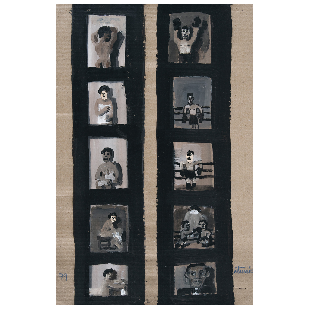 Subasta 825, Lote # 124 IGNACIO ITURRIA (Montevideo, Uruguay, 1949 - ) Tira cómica Firmado y fechado 99 Óleo y acrílico sobre cartón corrugado Procedencia: colección del historiador y crítico de arte Miguel Ángel Muñoz, adquirido directamente al artista. Exhibido en: "Ignacio Iturria. Obra en papel", exposición presentada en el Museo Regional de Guanajuato, Alhóndiga de Granaditas en el marco del 37 Festival Internacional Cervantino, octubre a noviembre de 2009. Nacido en Uruguay de ascendencia vasca, en la década de 1970 se fue a Cadaqués, España en busca de inspiración para su obra, donde permaneció 10 años. Desde la segunda mitad del siglo XX, su obra ha destacado, pues el artista ha desarrollado un estilo maduro, con un fuerte y personal vocabulario de colores terrosos y personajes de ensueño y fantasía, cargados de historias y provocadores de recuerdos, que hoy conocemos como el cuño indeleble de su arte poético y humanístico. Iturria ha expuesto su trabajo en diversos lugares de América Central y del Sur, Estados Unidos, Canadá, Europa y Japón. "A mí la pintura me entusiasma siempre. Para mí levantarme y saber que tengo una tela en blanco y que arranca el día es toda una ilusión, es como que podés empezar de vuelta. Esa es una de las cosas que más me gusta de esto, esa posibilidad de rectificación y que cada día parezca como si fuera un domingo o una fiesta o tu cumpleaños". Ignacio Iturria. Fuentes consultadas: MUÑOZ, Miguel Ángel. "Ignacio Iturria. Obra en papel". México. Museo Regional de Guanajuato, 2009 y SALLÉ ONETTO, Andrea. "Ignacio Iturria: pinceladas de interioridad". Uruguay. El Observador, sección Seisgrados, 22 de julio de 2014. 49.5 x 32.5 cm USD $2,850-$4,110 Estimado $ 55,000-80,000