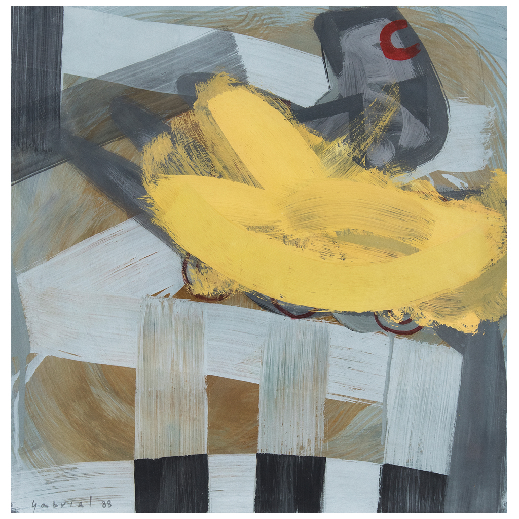 Subasta 825, Lote # 125 GABRIEL OROZCO (Jalapa, Veracruz, 1962 - ) Balsa Firmado y fechado 88 Acrílico sobre papel Con certificado de autenticidad del artista, enero de 2017. Con etiqueta de Galería Kin. Estudió en la Escuela Nacional de Artes Plásticas de la UNAM, al finalizar decidió viajar a España para explorar el arte por sus propios medios. En 1986 llegó a Madrid y entró al Círculo de Bellas Artes en donde conoció a una amplia gama de artistas de la posguerra y estableció estrechas amistades. Sus piezas fueron resultado de estas relaciones, de la exploración de la calle y de su negación por el sedentarismo. Las obras de los años 80 y 90 chocaron con las corrientes de la época, por lo que son consideradas rarezas de los inicios del arte de Gabriel Orozco. Son obras de alto contenido cultural, parteaguas de todo su trabajo, recolectoras de las historias de sus primeros encuentros artísticos y testigos de los lugares donde estuvo. Hoy en día Gabriel Orozco es el artista mexicano más cotizado en el mercado internacional del arte contemporáneo. Su obra ha sido motivo de un sinfín de exposiciones individuales en importantes recintos como el MoMA y The Solomon R. Guggenheim Museum en Nueva York, en el Museo Reina Sofía en Madrid, Hirshhorn Museum en Washington y en el Museo del Palacio de Bellas Artes en la Ciudad de México, entre otros. Es representado por la Marian Goodman Gallery de Nueva York, la Galería Kurimanzutto de la Ciudad de México y la Galerie Chantal Crousel de París. Fuente consultada: TORRES, Jonathán. "Gabriel Orozco: crea arte sin esperar nada a cambio". México. Forbes, 2016. 50 x 48.5 cm USD $12,850- $18,000 Estimado $ 250,000-350,000