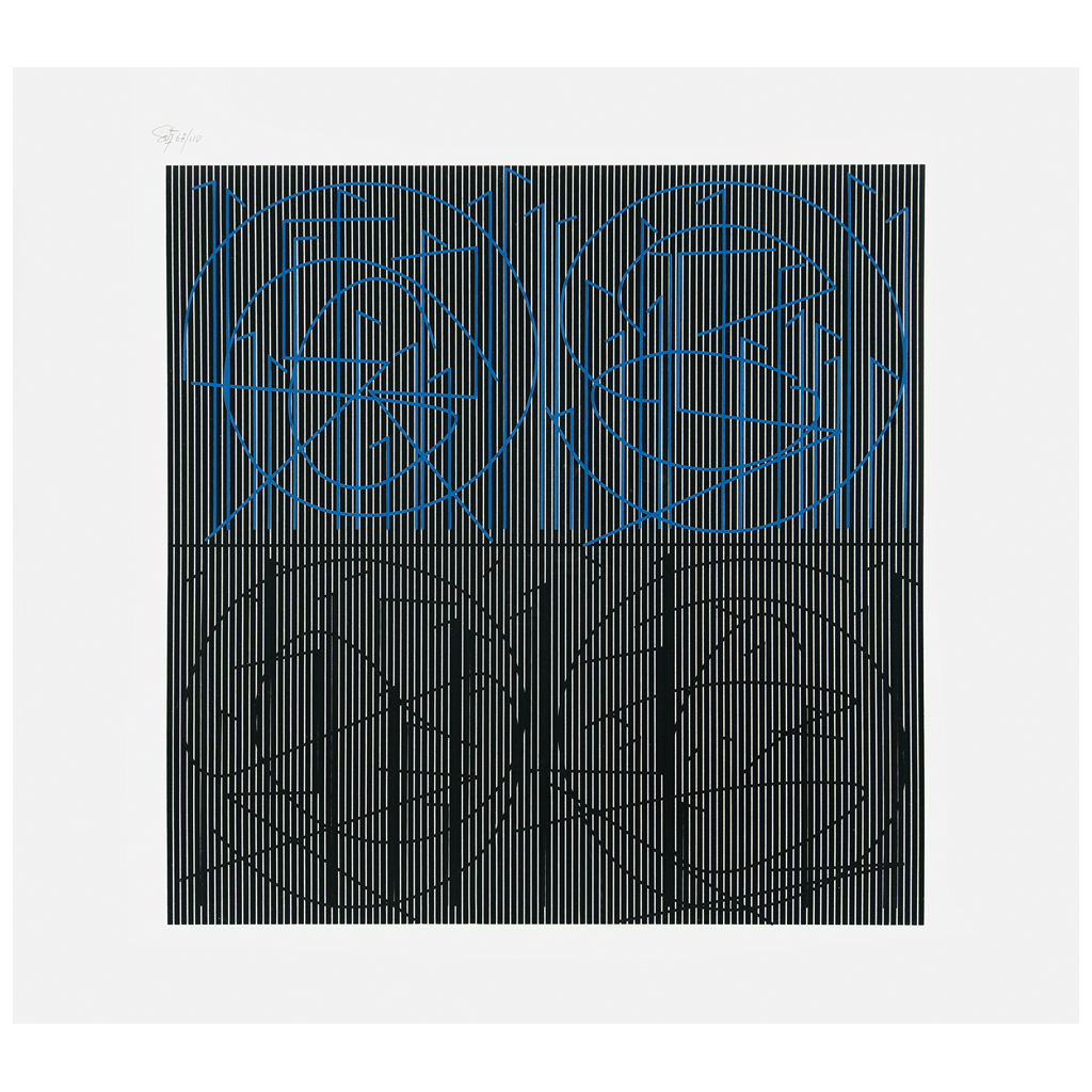 Subasta 825, Lote # 128 JESÚS RAFAEL SOTO (Ciudad Bolívar, Venezuela, 1923 - París, Francia, 2005) Milan écriture circulaire Firmada Serigrafía 67 / 110 Con certificado de autenticidad de Galería Alfredo Ginocchio, abril de 2017. En la serie "Écriture (escritura)" de Jesús Rafael Soto, la superficie parece revelar un guión misterioso. Un mensaje se forma, pero luego retrocede visualmente en un bosque de líneas verticales. Al moverse a distintas distancias, las líneas curvas parecen bailar hacia el primer plano. Este dinamismo es un registro de la mano del artista y produce la sensación de animación entre la superficie plástica y el espectador. El espacio era uno de los temas universales que Soto exploró en su obra, al respecto decía que concebía al arte "como un conjunto de preguntas que debe ser resuelto por el artista, porque son problemas que se plantea a lo largo de su vida". Soto va más allá de la reorientación de las relaciones entre los elementos físicos de su trabajo. Su arte también requiere un tipo diferente de relación con el espectador, una participación activa por medio del movimiento, el cual corresponde a las vibraciones ópticas. La música era importante para Soto (tocaba la guitarra) y fue la precisión matemática de Bach y los compositores modernos donde Soto reconoció la abstracción pura que buscaba para su arte. Fuente consultada: GINSBERG, Mimi. "Infinite possibilities: Jesús Rafael Soto's Escritura". E.E. U.U. Sitio del proyecto Constellations: Past, Present & Future Directions at the Art Museum of the Americas. 75 x 66 cm USD $5,650-$7,700 Estimado $ 110,000-150,000