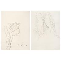JOSÉ CLEMENTE OROZCO (Zapotlán actual Ciudad Guzmán, Jalisco, 1883 - Ciudad de México, 1949) a) Modelo flaca con zapatos acostada, ca. 1940 b) Ángeles de utilería, 1946 Sin firma Lápiz de grafito sobre papel Piezas: 2 Ambos certificados al reverso de forma autógrafa por Margarita Valladares de Orozco. Los dos con dictámenes de autenticidad de la Fundación José Clemente Orozco A.C., firmados por Clemente Orozco V. Procedencia: adquiridos a la colección de la familia del artista; provienen originalmente del taller de José Clemente Orozco. Colección privada. 27.5 x 20 cm cada uno