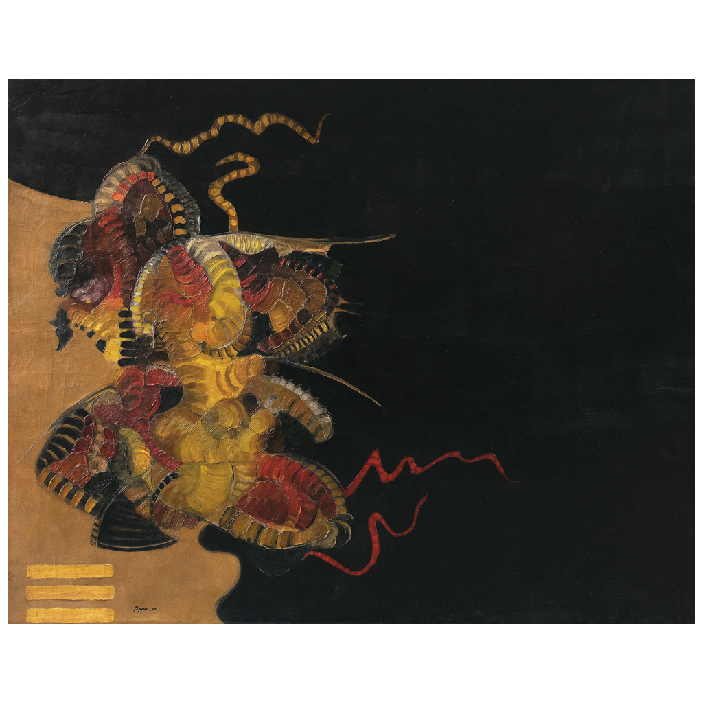 Subasta 825, Lote # 95 BYRON GÁLVEZ (Mixquiahuala, Hidalgo, 1941 - Ciudad de México, 2009) Sin título Firmado y fechado 68 Óleo sobre tela Agradecemos a Óscar Gálvez y a Eva Beloglovsky, viuda del artista, por la verificación de autenticidad de esta obra, abril de 2017. Estudió en la Academia de San Carlos, donde tuvo grandes maestros, tales como Antonio Rodríguez Luna, Francisco Moreno Capdevila, Luis Nishizawa, Santos Balmori y Antonio Ramírez, quienes ejercieron una importante influencia en el artista. En vida, presentó más de 60 exposiciones individuales en Estados Unidos y América Latina, además de muchas otras colectivas. Su producción plástica forma parte de diversas colecciones privadas en México y el extranjero. Su obra al óleo se caracteriza por un dominio técnico, una capacidad inusual en el manejo de los volúmenes y los colores fríos y su temperamento rebelde ante una realidad que pretende unificar al ser humano, su conocimiento en el manejo de la simultaneidad de los planos y sus cualidades como colorista. Fuente consultada: sitio oficial del artista www.byrongalvez.com 118 x 150 cm USD $5,150-$7,700 Estimado $ 100,000-150,000