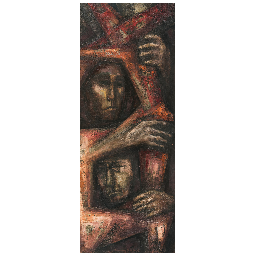 Subasta 825, Lote # 174 FANNY RABEL (Polonia, 1922 - Ciudad de México, 2008) Estructura No. 1 Firmada y fechada 1965 Mixta sobre masonite Con etiquetas del Salón de la Plástica Mexicana y de Galería Merkup A.C. Presenta ligeros detalles de conservación. Fue una destacada artista mexicana de origen polaco que se desempeñó en los campos de la pintura mural, de caballete, grabado y escenografía. Como alumna de Frida Kahlo, su enseñanza fue plenamente nacionalista con posturas ideológicas, políticas y sociales. Fue contratada por Diego Rivera para pintar en el Palacio Nacional y por David Alfaro Siqueiros para decorar los muros del Sindicato Mexicano de Electricistas. También fue miembro fundador del Salón de la Plástica Mexicana y trabajó en el Taller de Gráfica Popular. Su obra ha sido definida como poético surrealista, enfocada al aspecto humano. "Fanny Rabinovich pinta como vive, con enorme valor, inteligencia y sensibilidad aguda. Pero lo que yo juzgo más interesante en su pintura es la raíz profunda que la liga a la tradición y la fuerza de su pueblo. No es pintura personalista, sino social. Le preocupan fundamentalmente los problemas de clase, y ha observado con una madurez excepcional, el carácter y el estilo de sus modelos, dándoles siempre una viva emoción. Todo esto sin pretensiones, y llena de feminidad y finura que la hacen tan completa". Frida Kahlo. Fuentes consultadas: TOVAR DE TERESA, Guillermo. Repertorio de artistas en México. Tomo III. México. Grupo Financiero Bancomer, 1996, Pág. 102 y TIBOL, Raquel. "Algo sobre Fanny Rabel". México. La Jornada Semanal, sección Cultura, No. 637, 20 de mayo de 2007. 87 x 33.5 cm USD $3,600-$5,150 Estimado $ 70,000-100,000