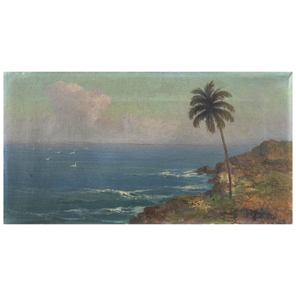 GUILLERMO GÓMEZ MAYORGA (Puebla, 1887 - 1962) Sin título Firmado Óleo sobre tela Presenta detalles de conservación. "Las marinas de Guillermo Gómez Mayorga abarcan diversas tonalidades monocromáticas que al integrarse con la delicada pincelada crean una atmósfera tradicional y fresca de las playas mexicanas, dando la impresión de sentir la frescura del mar irrumpiendo contra las rocas y la brisa salada de la costa […] Las sensaciones transmitidas por los paisajes de Mayorga se deben a su conocimiento grafológico, su amor por la naturaleza y su aprendizaje en la cumbre de las vanguardias artísticas de la época". Hugo Covantes. Fuente consultada: AMERLINCK, Rodrigo et ál. Guillermo Gómez Mayorga. México. Fernández Cueto Editores, 1998, pp. 101-107. 22.5 x 42.5 cm Estimado $ 36,000-50,000