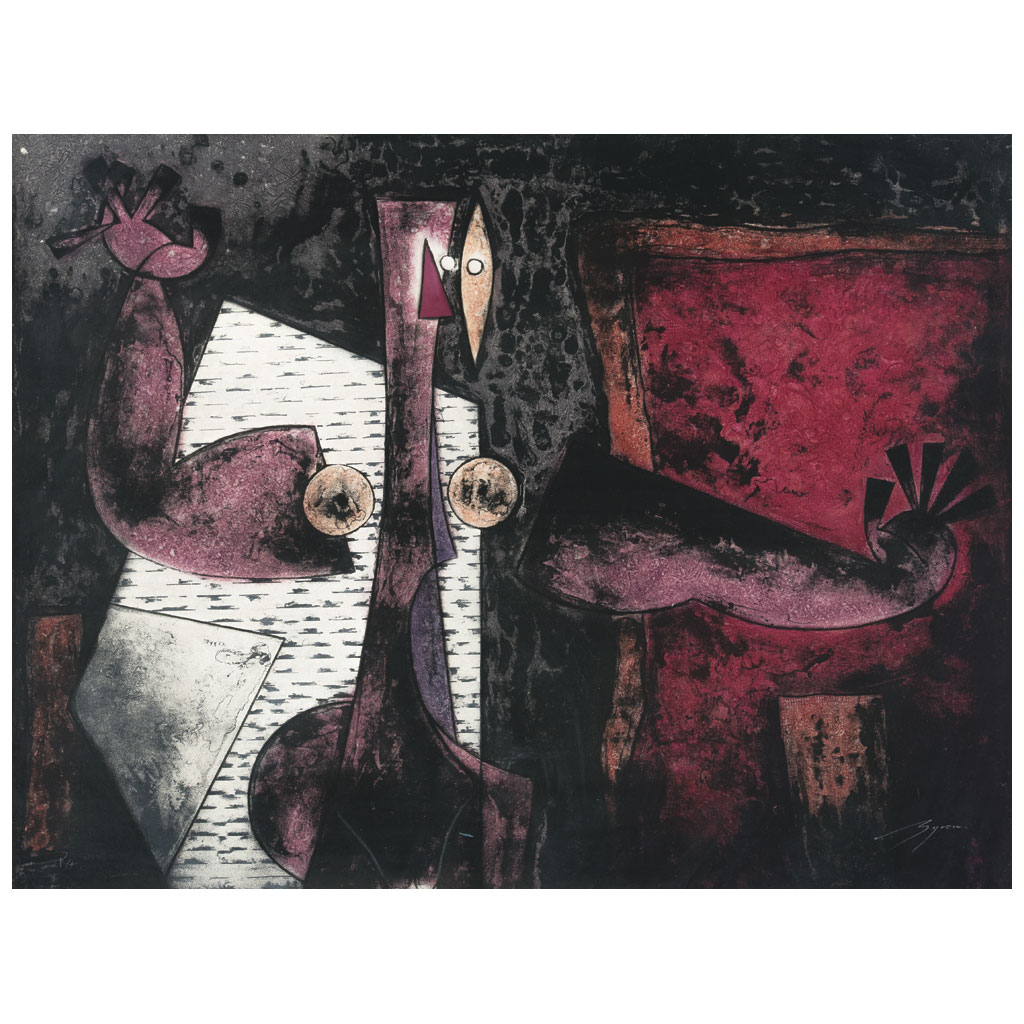 Subasta 857, Lote # 278 BYRON GÁLVEZ (Mixquiahuala, Hidalgo, 1941 - Ciudad de México, 2009) Amanecer Firmada Acrilografía P / T 85 x 110 cm Estimado $ 16,000-26,000