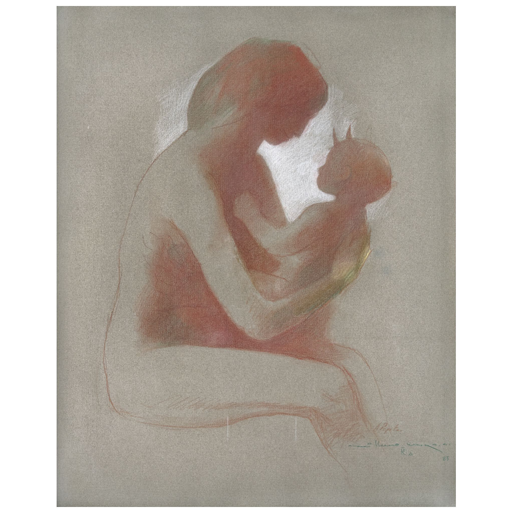 GUILLERMO MEZA (Ciudad de México, 1917 - Ciudad de México, 1997) Pasifae y Minotauro Firmado, fechado 85 y con monograma Pastel sobre papel Con dedicatoria "A Pepita". Con etiqueta de Arte Núcleo.