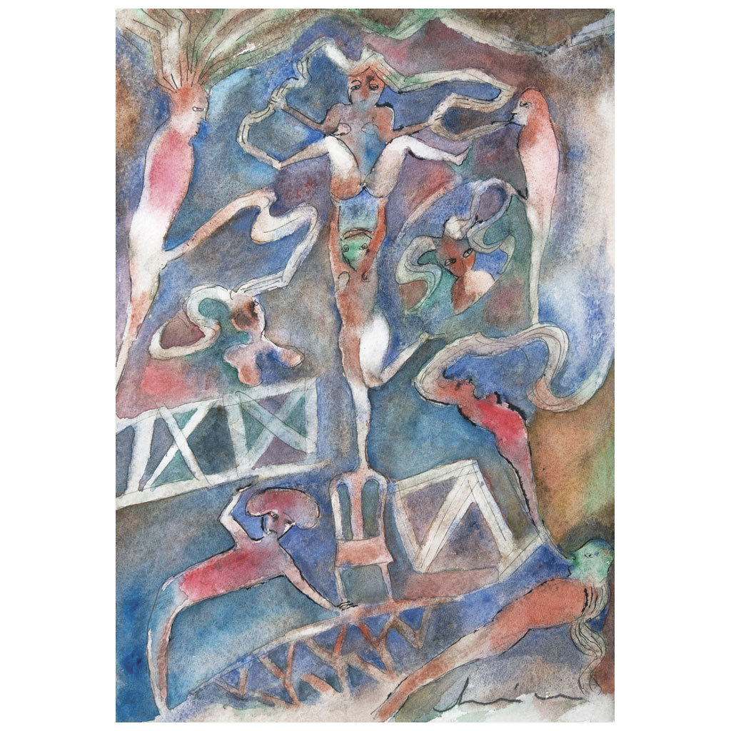 Subasta 857, Lote # 214 VÍCTOR CHA'CA (Juchitán, Oaxaca, 1948 - ) El gran circo Firmada Acuarela sobre papel 33.6 x 23.5 cm Estimado $ 6,000-10,000
