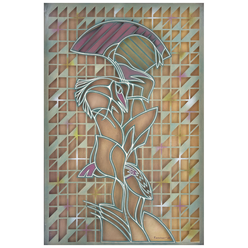 Subasta 857, Lote # 258 SAÚL KAMINER (Ciudad de México, 1952 - ) Lugar del desierto Firmado y fechado 85 Acrílico sobre cartulina cortada sobre madera Con etiqueta de Galería Estela Shapiro. "Su destino de creador es el de un hombre que recorre los lugares inexplorados del espacio interior. En ese territorio invisible habitado por el silencio y el color, Kaminer es expresionista, surreal, máscara, pájaro, sombra: escultura, óleo, dibujo, objeto milenario, barro cocido en el tejido de un laberinto. "El ancestro judío de Kaminer dialoga hace mucho tiempo con la diversidad mexicana: precolombina y hermética, española y colonial, mundo intenso y expresivo donde la piedra es escultura, pirámide, iglesia, convento colonial: siempre enigma. De esos mundos asimétricos es habitante de tiempo completo y discípulo de su intensidad inagotable. Es la sustancia mágica que anima su creación y desde donde se alimentan sus formas y colores en su pintura, escultura, cerámica y objeto totémico". Rafael Alcérreca. Fuente consultada: ALCÉRRECA, Rafael. "'Saúl Kaminer: hacedor de lo inmemorial'. Exposición Laberintos en la luz". México, Grupo BMV, 2015. 77 x 51 cm Estimado $ 18,000-26,000