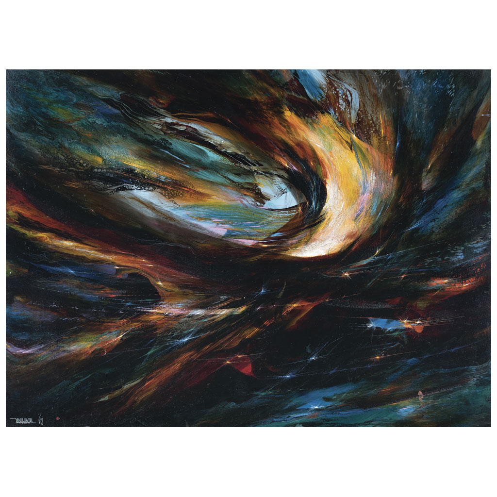 Subasta 857, Lote # 336 LEONARDO NIERMAN (Ciudad de México, 1932 - ) Tormenta / Tempestad Firmado y fechado 68 Acrílico sobre masonite Agradecemos al Maestro Leonardo Nierman por la verificación de autenticidad de esta obra, enero del 2017. Con un título en Ciencias Físico Matemáticas y Diseño Gráfico, estudios en psicología del color y violinista de profesión, Nierman es uno de los artistas mexicanos más reconocidos internacionalmente por su obra colorida llena de ritmo y armonía. Su relación con el expresionismo abstracto, los fenómenos cósmicos y la naturaleza, sumados a la pasión por la música clásica, se ve reflejada en la diversidad de su obra. Por ejemplo, a menudo emplea términos pictóricos para describir la música, refiriéndose al cromatismo como el compositor, el color como el sonido y las pinceladas como la partitura. Con los años, la obra de Nierman ha recorrido y sobresalido en gran parte del mundo. Ha participado en exposiciones colectivas e individuales que lo han hecho acreedor de importantes premios, tales como la Medalla al mérito en Roma, la Palma de Oro de las Bellas Artes de Mónaco y los reconocimientos del Servicio Postal y la Lotería Nacional Mexicana con una edición especial. Actualmente, su obra se encuentra en prestigiosas colecciones de museos y edificios públicos de países de Europa, Asia y América. Fuentes consultadas: LÁMBARRY, Margarita et ál. La colección de pintura del Banco Nacional de México. Tomo II. México. Grupo Financiero Banamex, 2002, Pág. 460 y VELA, Sergio. "Leonardo Nierman". España. Ayuntamiento de Valencia, Preludio, junio-julio del 2006. 90 x 120 cm Estimado $ 80,000-120,000