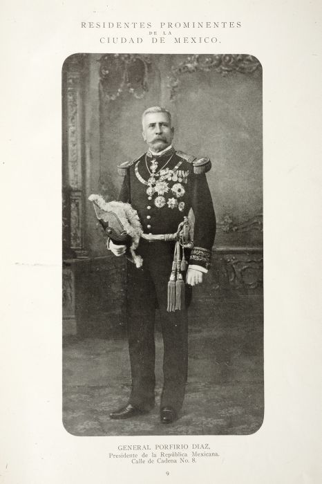 Con una fotografía de cuerpo entero de Porfirio Díaz y cuatro retratos por página.