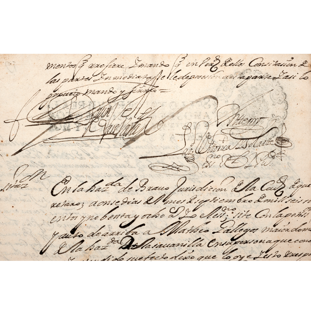 "Don Gaspar de zuñiga y acevedo conde de monte Rey... Virrey lugar Theniente del Rey ntro. sr. gouernador y cappn. gl. de efta nuva efpaña... Don Luis de Velasco hizo una merced del tenor siguiente... hago merced a ffranco. Redondo de dos cavallerias de tierra dentro de los limites y terminos de un sitio de ... que posee en termis de queretaro...". México a 28 de Septiembre de 1599.