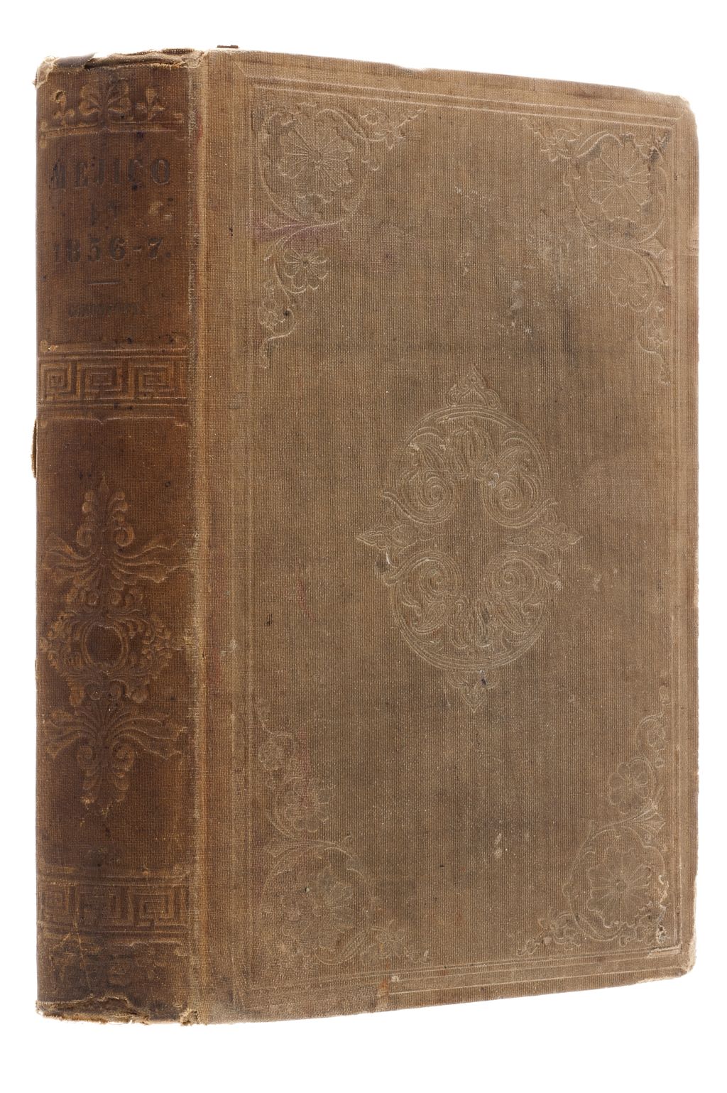 AB - Portilla, Anselmo de la. Méjico en 1856 y 1857. Gobierno del General Comonfort. Nueva York: Imprenta de S. Hallet, 1858. 4o., VIII + 396 p. + 1 h. Pastas y lomo gastados. Primeras VIII páginas con mancha de humedad en margen inferior, no afecta texto. Encuadernado en pasta dura. La obra se ocupa del periodo en que gobernó el Presidente Ignacio Comonfort, de sus intentos por conciliar las corrientes liberales y conservadoras, y de la promulgación de la Constitución de 1857, hecho histórico que antecede la Guerra de Reforma. Estimado $ 6,000-8,000