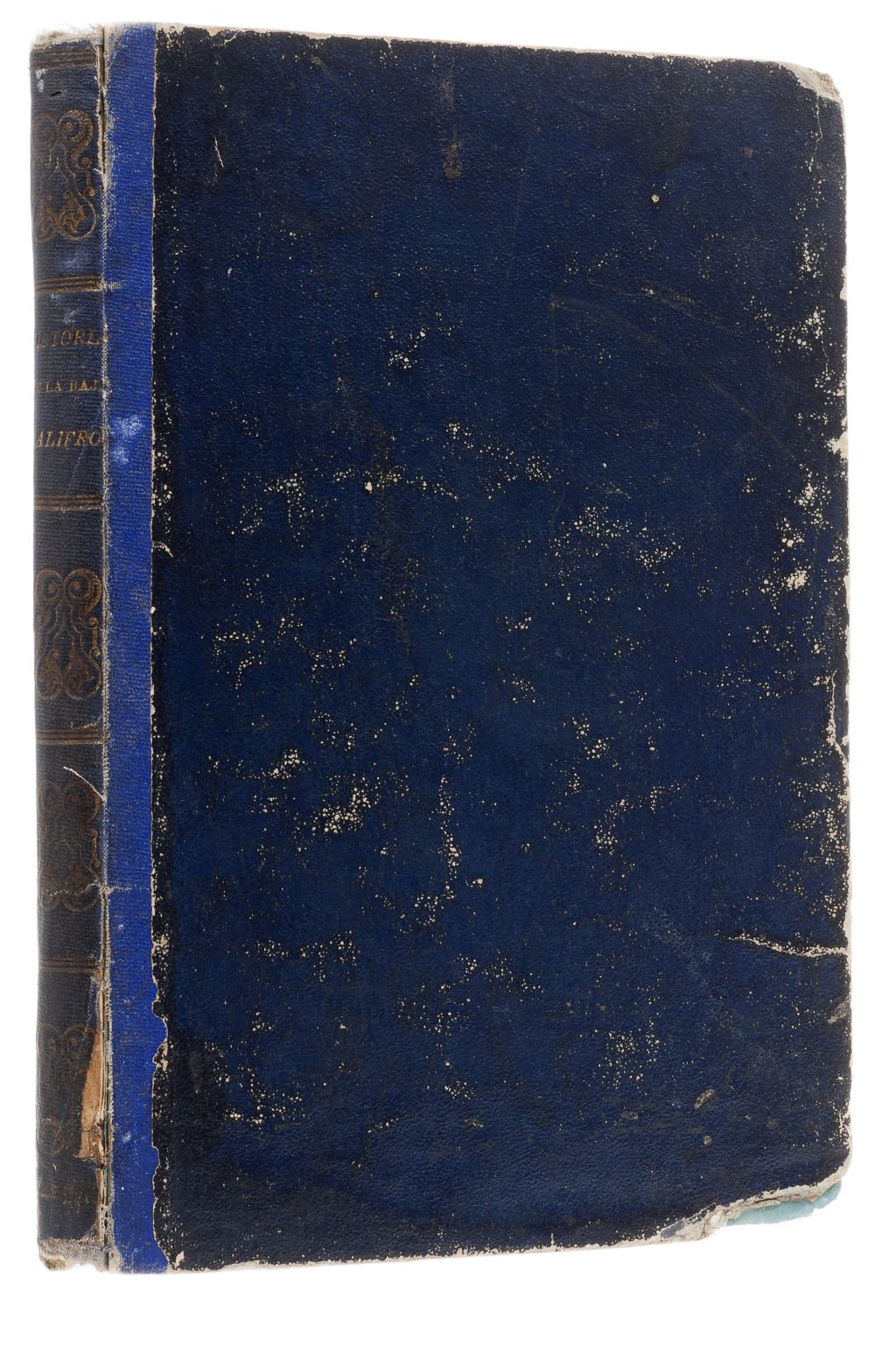 AB - Clavijero, Francisco Javier. Historia de la Antigua o Baja California - Relación Histórica de la Vida del Venerable Padre Fray Junípero Serra. México: Juan R. Navarro, 1852. 4o. marquilla, V + 252 p. + 3 h. Primera edición en español. Traducida del italiano por D. Nicolás García de San Vicente. Pastas y lomo gastados. Texto con mancha de humedad en margen inferior, sin afectar texto. Encuadernado en pasta dura. Obra Póstuma, tras ser expulsado de México Francisco Javier Clavijero (Puerto de Veracruz, México, Nueva España 9 de septiembre de 1731- Bolonia, Estados Pontificios, 2 de abril de 1787) junto con los Jesuitas de la Nueva España en 1767, se estableció en Italia donde completó la presente obra "Historia de la Antigua o Baja California", Clavijero había pasado más de 30 años buscando y recopilando información para esta obra, sin embargo, es hasta 1789 que se publica en 4 volúmenes, en italiano. El libro contiene información sobre la fundación de las misiones (incluyendo la de San Francisco), pasajes sobre el Padre Kino Ugarte, Basalduá y Salvatierra, las primeras expediciones, así como una amplia descripción de los indígenas y de la difícil vida de los primeros colonizadores en la región. Estimado $ 8,000-10,000