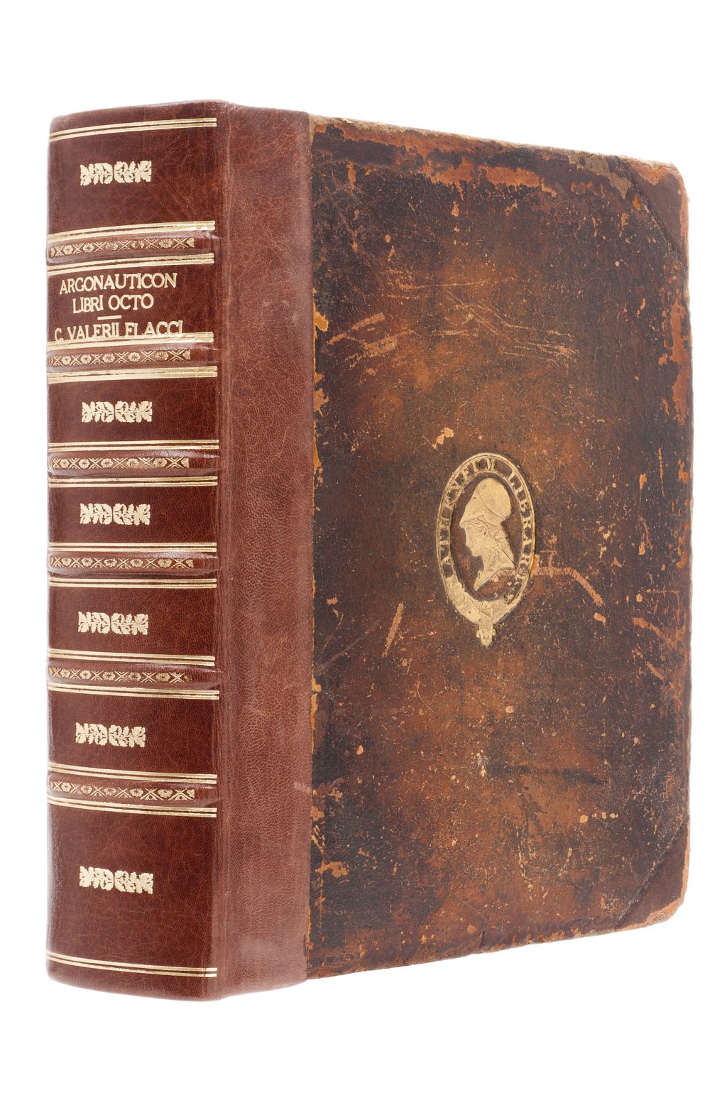 FA - Valerii Flacci, C. Setini Balbi Argonauticon. Leidae: Apud Samuelem Luchtmans, 1724. 4o. marquilla, 80 h. + 759 p. + 50 h. Libri octo, cum notis integris Ludovici Carrionis, Laurentii Balbi Liliensis, Justi Zinzerlingi, Christophori Bulaei, Gerardi Vossii et Nicolai Heinsii, et selectis Aegidii Maserii, Joannis Baptistae Pii, Joannis Weitzii, et aliorum, curante Petro Burmanno, qui & suas adnotationes adjecit. Pastas gastadas. Encuadernado en pasta dura, en piel. "Los Argonautas", Poema épico inacabado en ocho libros, que trata sobre el viaje emprendido por Jasón y otros guerreros griegos en busca del Vellocino de Oro. Esta edición del "Argonauticon" fue editada por Pieter Burmann (1668 - 1741) profesor de historia y elocuencia en Utrecht y Leiden, quien compiló e incluyó copiosas notas de eruditos y académicos anteriores. Estimado $ 9,000-11,000