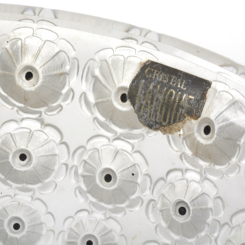 Centro de mesa. Francia. Siglo XX. Elaborado en cristal de Lalique. Modelo Nemours. Presenta detalles de conservación. Dimensiones: 25 cm. Ø Estimado $ 5,000-7,000