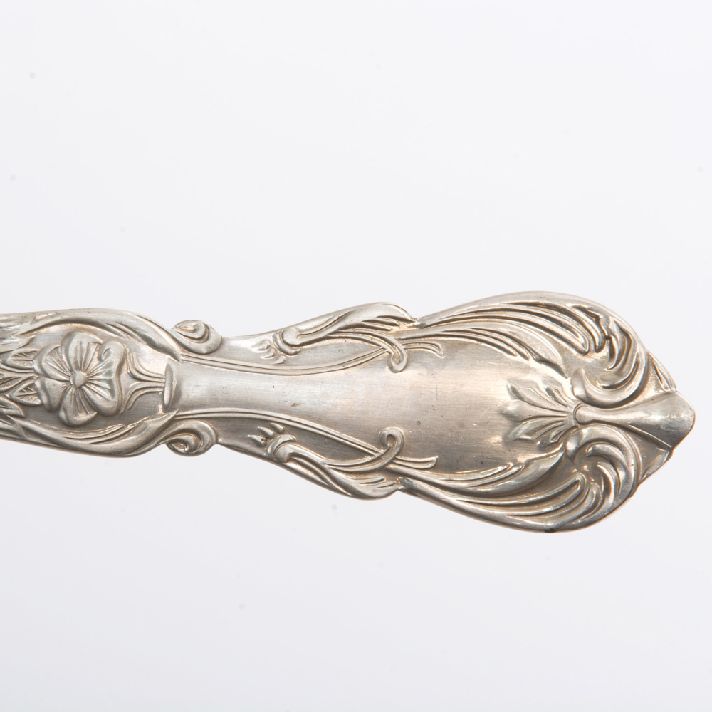 Juego de 91 cubiertos. Siglo XX. Elaborados en alpaca. Unos marca Celsa. Consta de: 12 cuchillos, 12 tenedores para carne, 12 cucharas para sopa, 12 tenedores para postre, 12 cucharas para postre, 12 cucharas para té, 2 matequilleros, 12 tenedores para mariscos y 5 cubiertos de servicio. Presentan marcas y desgaste. Estimado $ 2,000-3,000