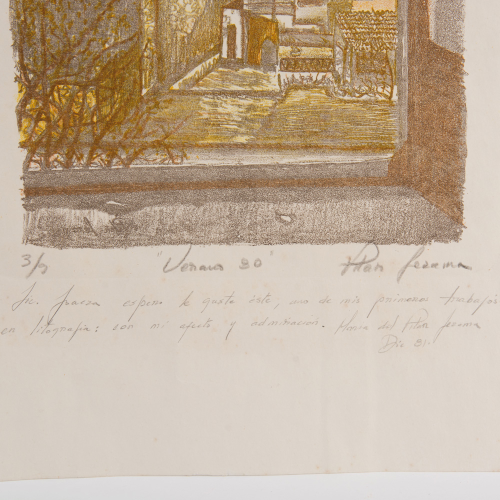 María del Pilar Lezama. "Verano 80". Litografía. Serie: 3/9. Fechado 81. Con dedicatoria de la autora. Sin enmarcar. Presenta marcas y ligeras manchas. Dimensiones: 31 x 26 cm. Estimado $ 1,000-2,000