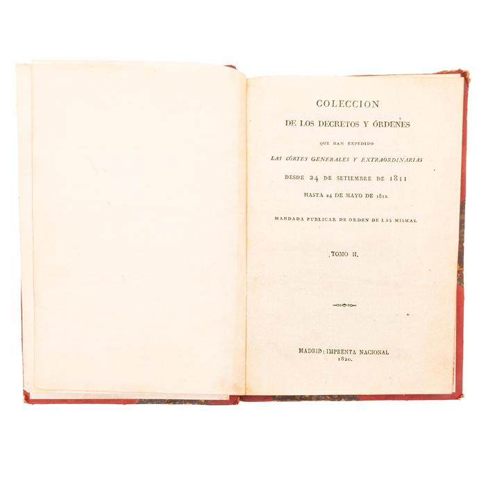 COLECCIÓN DE LOS DECRETOS Y ÓRDENES QUE HAN EXPEDIDO LAS CORTES GENERALES Y EXTRAORDINARIAS, DESDE EL 24 DE SEPTIEMBRE DE 1811 HASTA EL 24 DE MAYO DE 1812, MANDADA PUBLICAR POR ORDEN DE LAS MISMAS. IMPRENTA NACIONAL DE MADRID 1820.