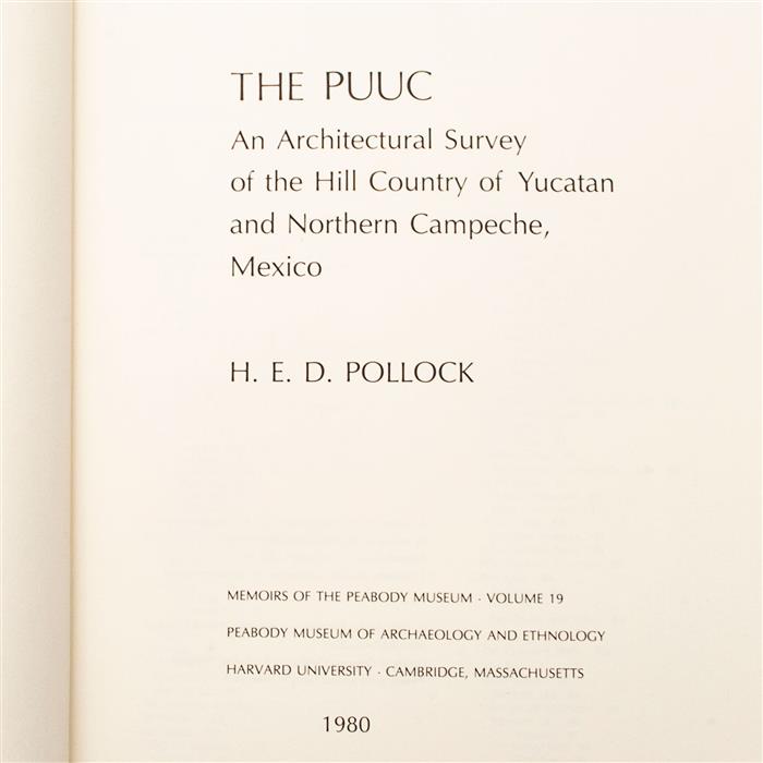 POLLOCK, H. E. D. THE PUUC. AN ARCHITECTURAL SURVEY OF THE HILL COUNTRY OF YUCATAN AND NORTHERN CAMPECHE, MEXICO. CAMBRIDGE, MASSACHUSETTS: HARVARD UNIVERSITY, 1980.